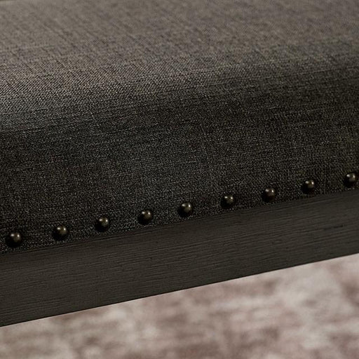A gray wood grain finish adorns this fashionable and practical bench. Featuring fabric upholstered padded seat, the inclusion of a bench delivers s...