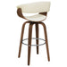 Accentuate the natural style of a kitchen island or breakfast bar with the inviting appeal of this charming swivel bar stool. Its classic silhouette is artfully crafted with sleek, elegant lines. Smooth, black PU upholstery makes a lovely complement to the understated walnut finish of its simple wooden base. A sturdy seat back and simple round foot base provide extra ergonomic support. Whether you're grabbing a quick bite to eat or savoring an elaborate feast, this stately stool is an excellent seating choice to enhance your dining experience. Key Features: • Inviting appeal of charming swivel bar stool with classic silhouette crafted with sleek, elegant lines • Smooth black PU upholstery complements understated walnut finish of simple wooden base • Sturdy seat back and round foot base provide ergonomic support • Perfect for quick bites or elaborate feasts to enhance dining experience • Elegant addition to accentuate natural style of kitchen island or breakfast bar