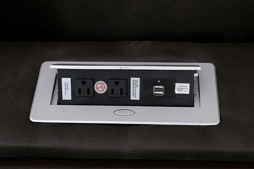 Transitional Brown Solid Wood, Engineered Wood, Fabric, Foam Glider Recliner Two-Tone Design LED on Bottom USB-A & USB-C Charging Port Console...