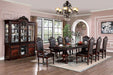 PICARDY Dining Table, 12"(84" + 2 X 18"LEAF)L X 46"W X 3 3/4"H, 299.2lbs. A perfect fit for those looking for a traditional piece, this dining set brings the right amount of grandiose. The oversized table top is expanded with two 18-inch leaves with beautiful edge and apron details. Supporting the table top are two similarly oversized pedestals, each featuring intricate scrolled metal accents and a wide four-legged base. The chairs have upholstered seat and back cushions with black leatherette and nailhead trim. The matching hutch and buffet share the same faux wood carvings and metal details--subdued baroque influences that make it surely stand the test of time.